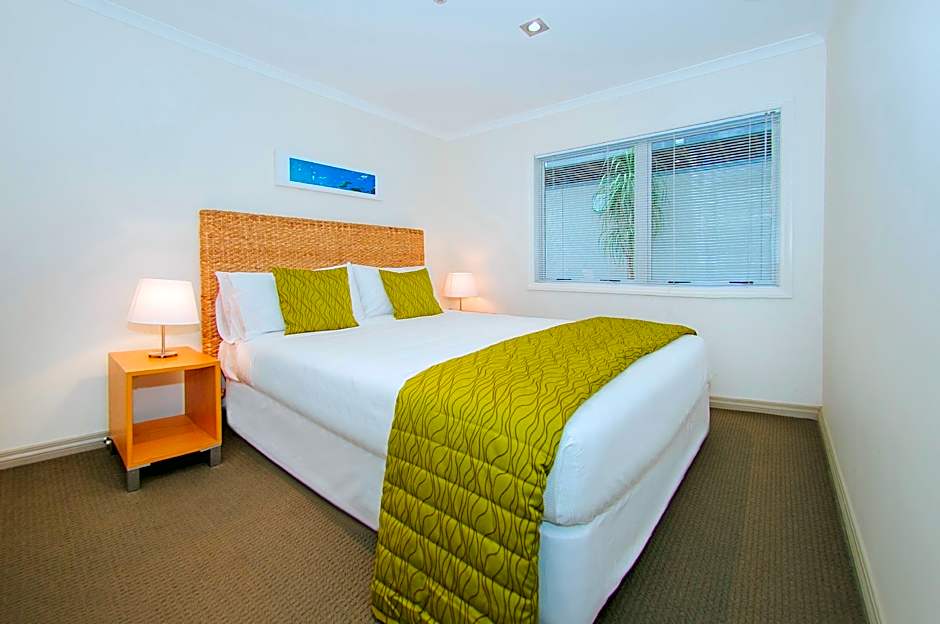 Enjoy the lovely views from the private balcony of these 2-bedroom apartments. Each bedroom has a queen-size bed. The master bedroom has an private bathroom and there is a 2nd bathroom. Some apartments have internal stairs - please let us know if this does not suit.